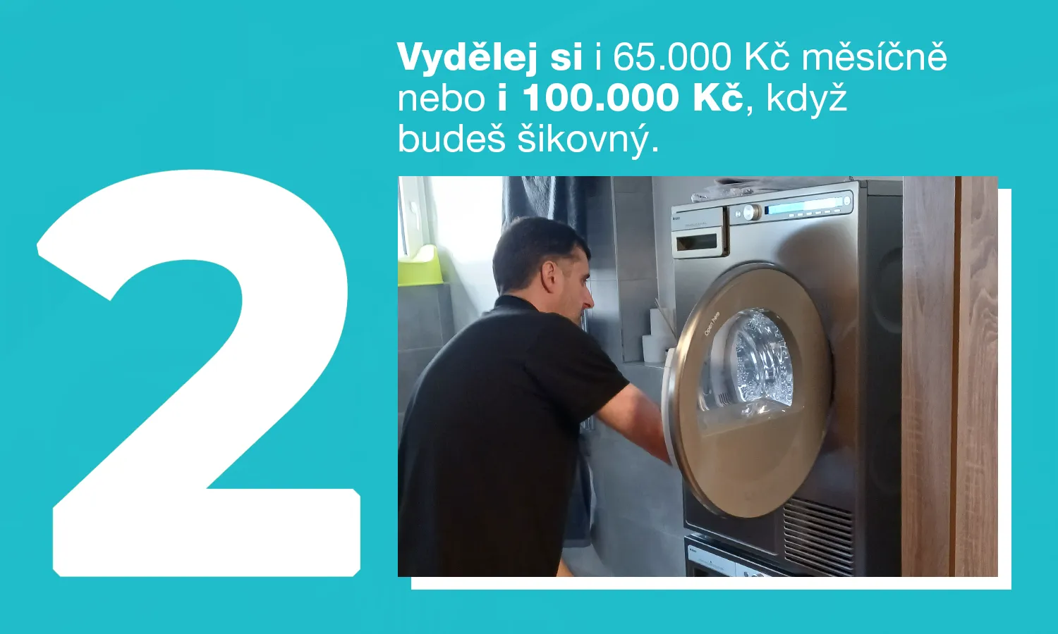 Tím, že spolupracujeme s vybranými značkami elektroniky, máme garantovaný neustálý příjem zakázek. Nemusíš se tedy bát, že by byl slabší měsíc a ty ses ocitl v situaci, kdy nemáš na zaplacení složenek.